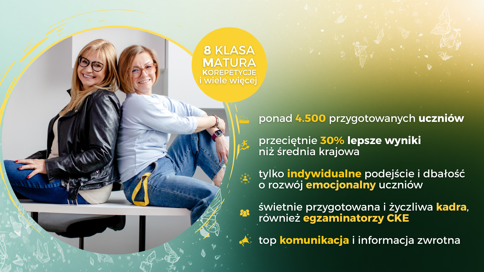 Nasza kadra to blisko 30 nauczycieli i korepetytorów (również egzaminatorów CKE), których pasją jest przekazywanie wiedzy i praca z młodzieżą.